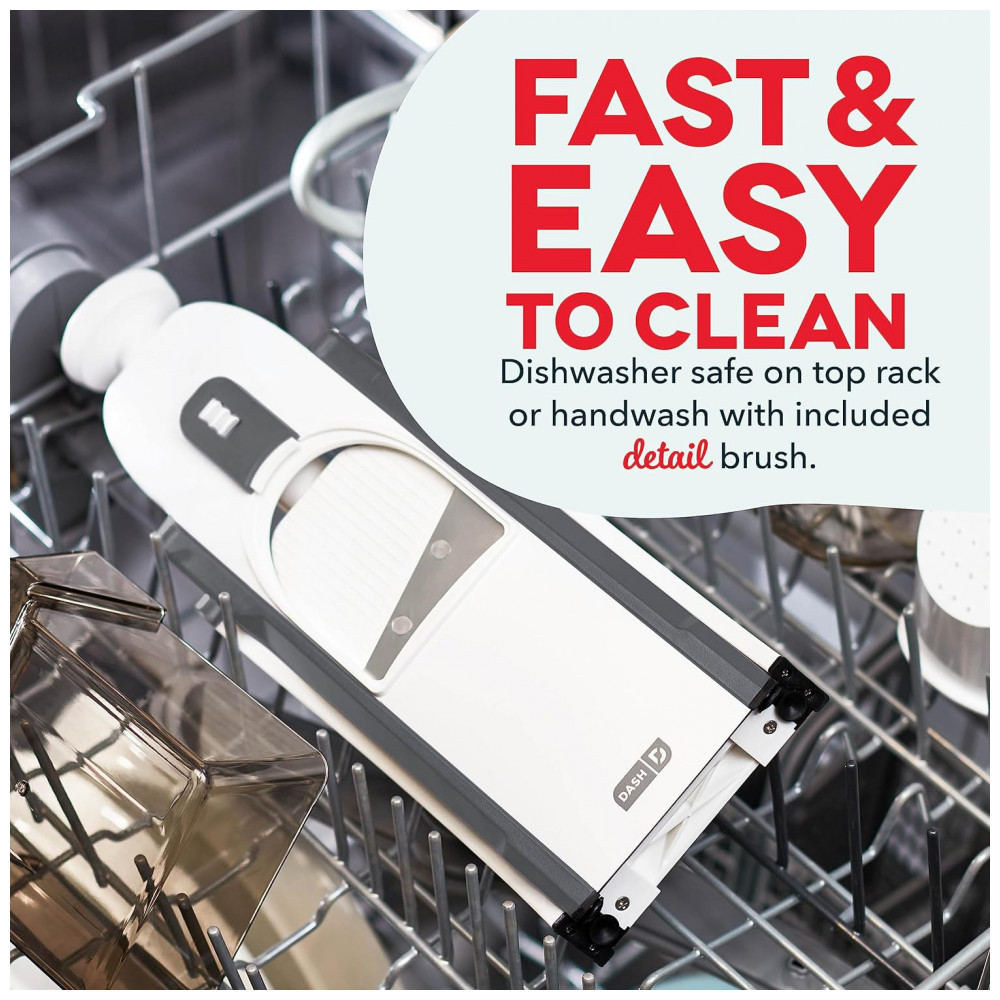 Picador de Legumes e Vegetais Ajustável com 30 Predefinições, DASH DSM100, Cinza: MAIS Projetado para manter as mãos e os dedos longe das lâminas, para uma maneira mais fácil e segura de fatiar.