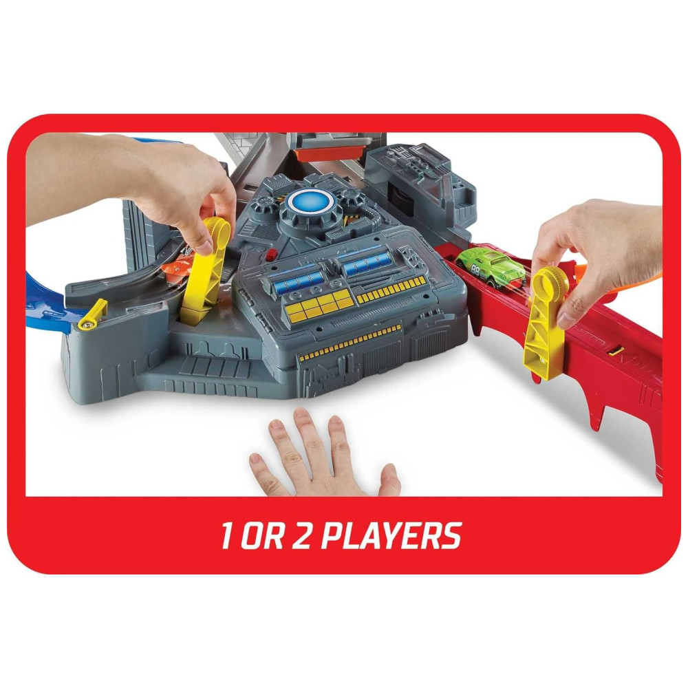 Este conjunto motorizado Hot Wheels Spin Storm Track é perfeito para crianças que adoram corridas e ação de colisão. Com duas zonas de largada diferentes, os carros são lançados na…
