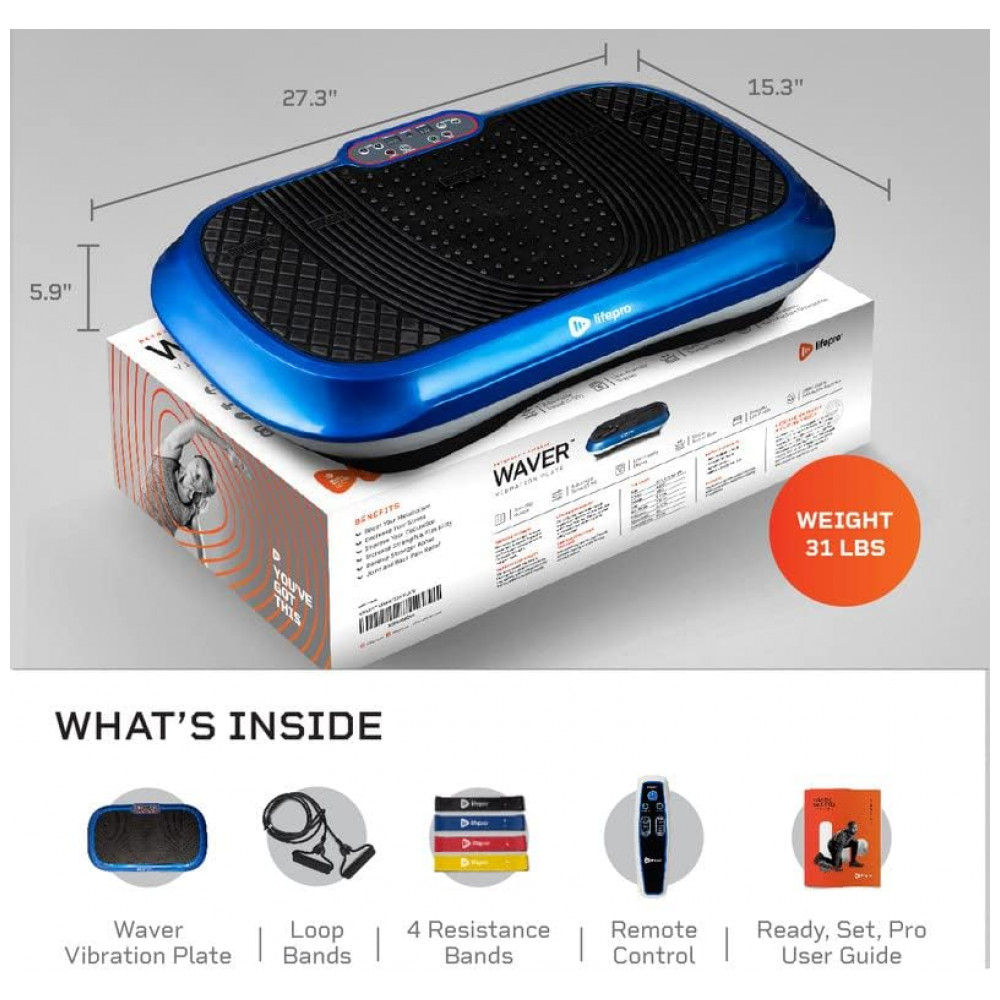Plataforma Vibratória LifePro com 99 Configurações de Velocidades, Suporta até 149 kg, Azul: