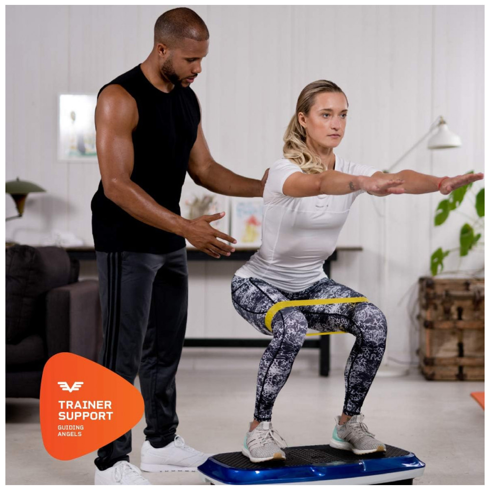 BÔNUS ESPECIAIS DE CLIENTES Tornando a máquina vibratória corporal ainda melhor, incluímos um manual extenso e fácil de usar, suporte ao vivo e acesso instantâneo a vídeos de exercícios profissionais on line gratuitos Todas as informações sobre as funções da máquina de treino de corpo são exibidas na tela de fácil leitura, proporcionando o máximo controle com facilidade