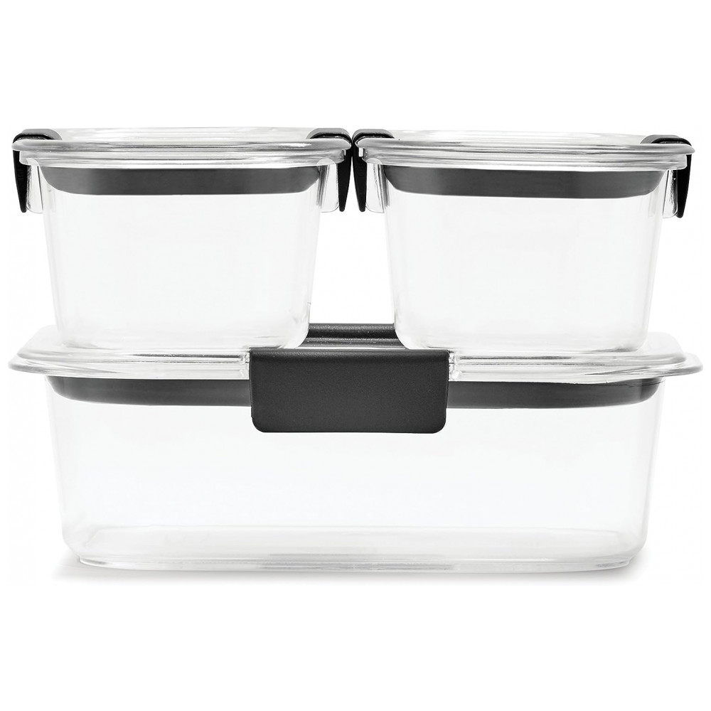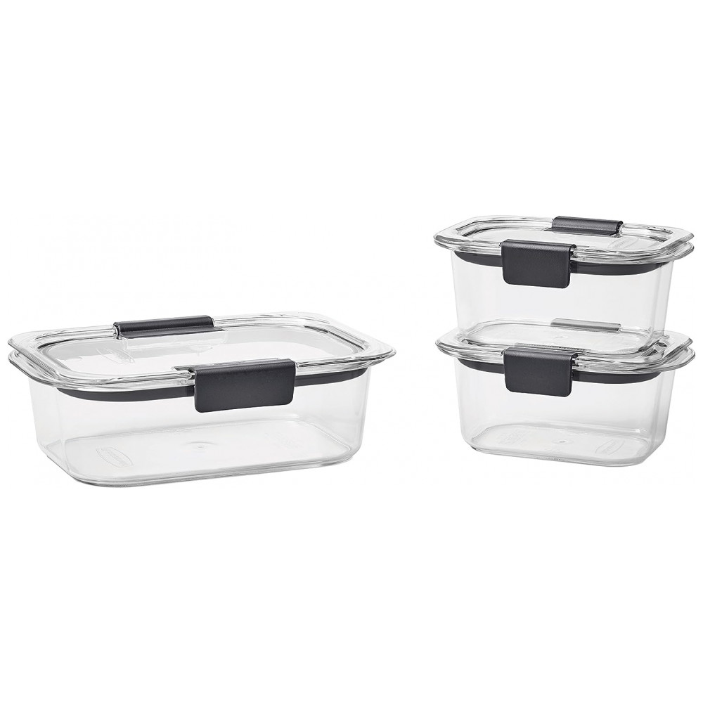 Potes Herméticos para Alimentos, Retangular, 300, 800 mL, 3 Unidades, RUBBERMAID 2025903, Cinza escuro: Os recipientes de zenamento de alimentos Rubbermaid Brilliance 100 à prova de vazamentos apresentam tampas e bases Tritan sem BPA com clareza de 360 graus vedação hermética e travas seguras evitam derramamentos e vazamentos e ajudam a manter os alimentos frescos e s Perfeito para uma variedade de ocasiões e eventos, como almoços, lanches, preparação de refeições, festas, feriados e muito mais Os recipientes transparentes são transparentes como o vidro para que você sempre possa ver o que está dentro, mas são leves e fáceis de transportar o material resistente a manchas mantém o recipiente de plástico com aparência de e resiste a odores Ventiladores embutidos sob as travas permitem micro ondas resistente a respingos com a tampa Os recipientes empilham se perfeitamente uns aos outros para economizar espaço e ficar organizados na despensa ou geladeira É para a máquina de lavar louça, microondas e freezer O conjunto de 6 recipientes de plástico para zenamento de alimentos inclui dois recipientes de 300 ml e um de 800 ml, mais tampas, para um total de 6 peças
