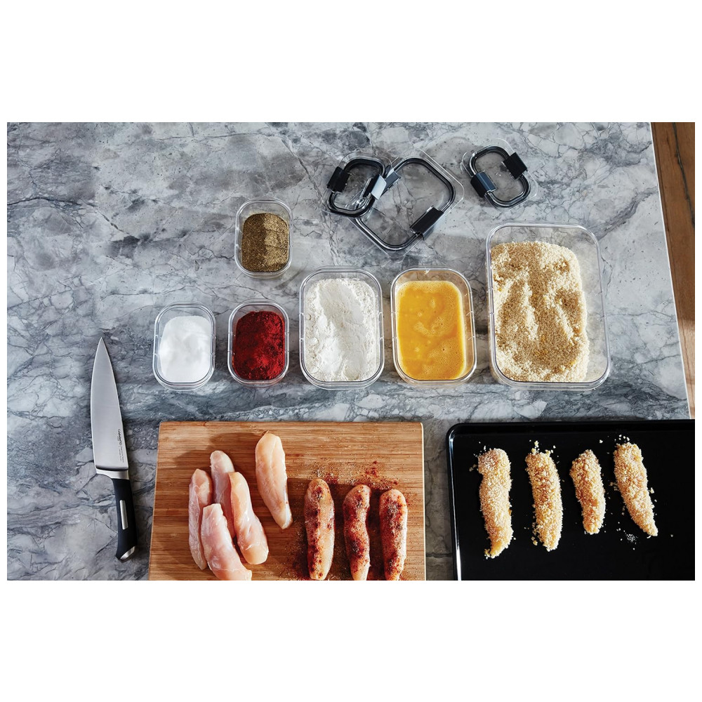 Os recipientes de zenamento de alimentos Rubbermaid Brilliance 100 à prova de vazamentos apresentam tampas e bases Tritan sem BPA com clareza de 360 graus vedação hermética e trava…