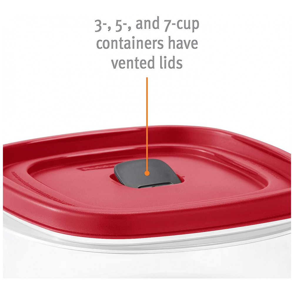 Potes para Alimentos, Capacidade Variada, Quadrado 30 Unidades, RUBBERMAID 2063701, Vermelho: Isenção de responsabilidade Apenas os recipientes 3c 5c e 7c contêm tampa ventilada Ventilador integrado para microondas resistente a respingos As tampas se encaixam nas bases para reduzir a desordem BPA livre para micro ondas e lava louças Paredes espessas e duráveis do contêiner para uso diário O conjunto contém 30 recipientes de alimentos variados e 30 tampas para um total de 60 peças O conjunto inclui 6 de 120 ml, 6 de 300 ml, 6 de 480 ml, 5 de 720 ml, 4 de 1,2 mL, 2 de 1,6 ml e 1 de 2,1 ml