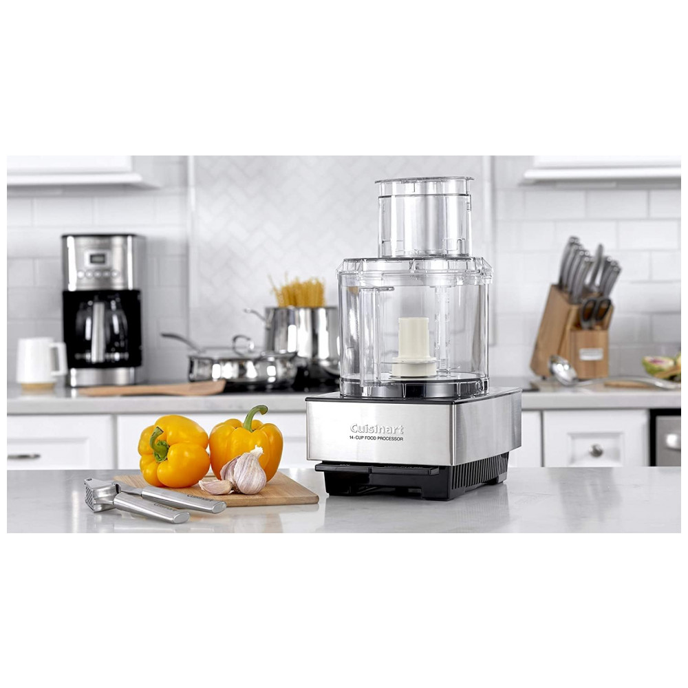 Processador 14 Xícaras Gourmet Aço Inox. Escovado 720 Watts, 110v, CUISINART DFP 14BCNY, Preto: Inclui disco de fatiar de aço inoxidável, disco de trituração e nova lâmina de corte processador de alimentos de grande capacidade de 720 watts com botões intuitivos on e off , pulse tigela de trabalho Lexan de 14 xícaras tubo de alimentação extragrande pequenos e grandes empurradores Espátula, livreto de instruções receitas peças seguras para máquina de lavar louça Produto construído de acordo com os padrões elétricos da América do Norte.