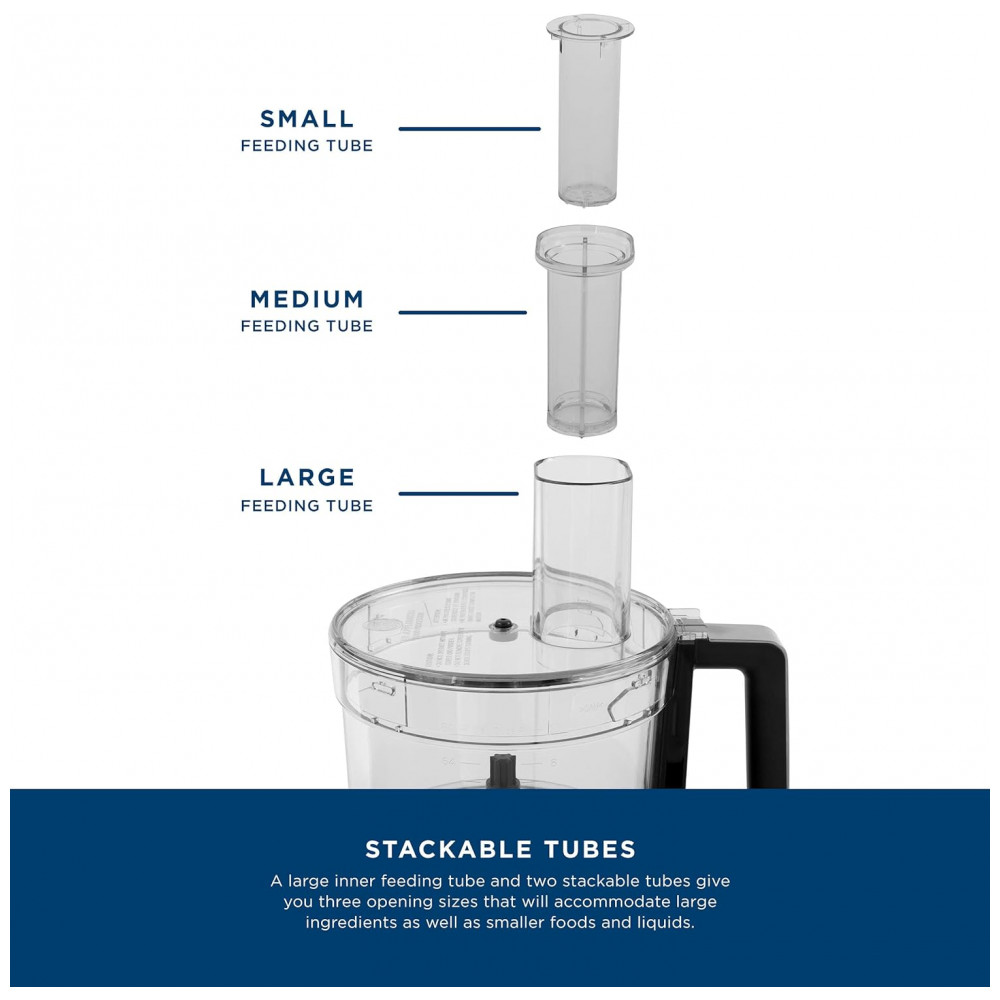 Tubo de alimentação grande elimine a necessidade de pré cortar ingredientes graças a um processador de alimentos com tubo de alimentação grande que acomoda ingredientes inteiros ou grandes com facilidade