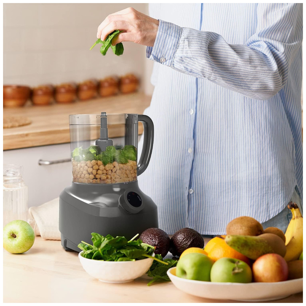 Processador de Alimentos Compacto 1L Aço Inox, 400W, 110v, LA REVEUSE, Cinza: Capacidade de 4 xícaras A tigela de 4 xícaras, 1L é compacta e grande o suficiente para lidar com a maioria das tarefas em sua cozinha, independentemente de um pequeno lote ou uma tigela inteira de ingredientes Acessórios práticos inclui tigela processadora de 1L, lâmina de corte, lâmina emulsificante, disco reversível para fatiar e ralar, disco para ralar, disco para batatas fritas, acessório espremedor de frutas cítricas Poderoso Este processador de alimentos possui motor de cobre puro de 400 watts, 2 velocidades ajustáveis mais pulso para controlar resultados grosseiros ou finos para uma variedade de receitas Processamento fácil com menos tempo de preparação Funciona como processador de alimentos, picador de alimentos, picador de legumes, cortador, cortador, fatiador, espremedor de frutas cítricas, tigela de mistura com uma base de motor, economiza tempo e esforços Fácil de limpar e de usar todas as peças, exceto a base do motor, os acessórios do espremedor de frutas cítricas são laváveis na máquina de lavar louça.