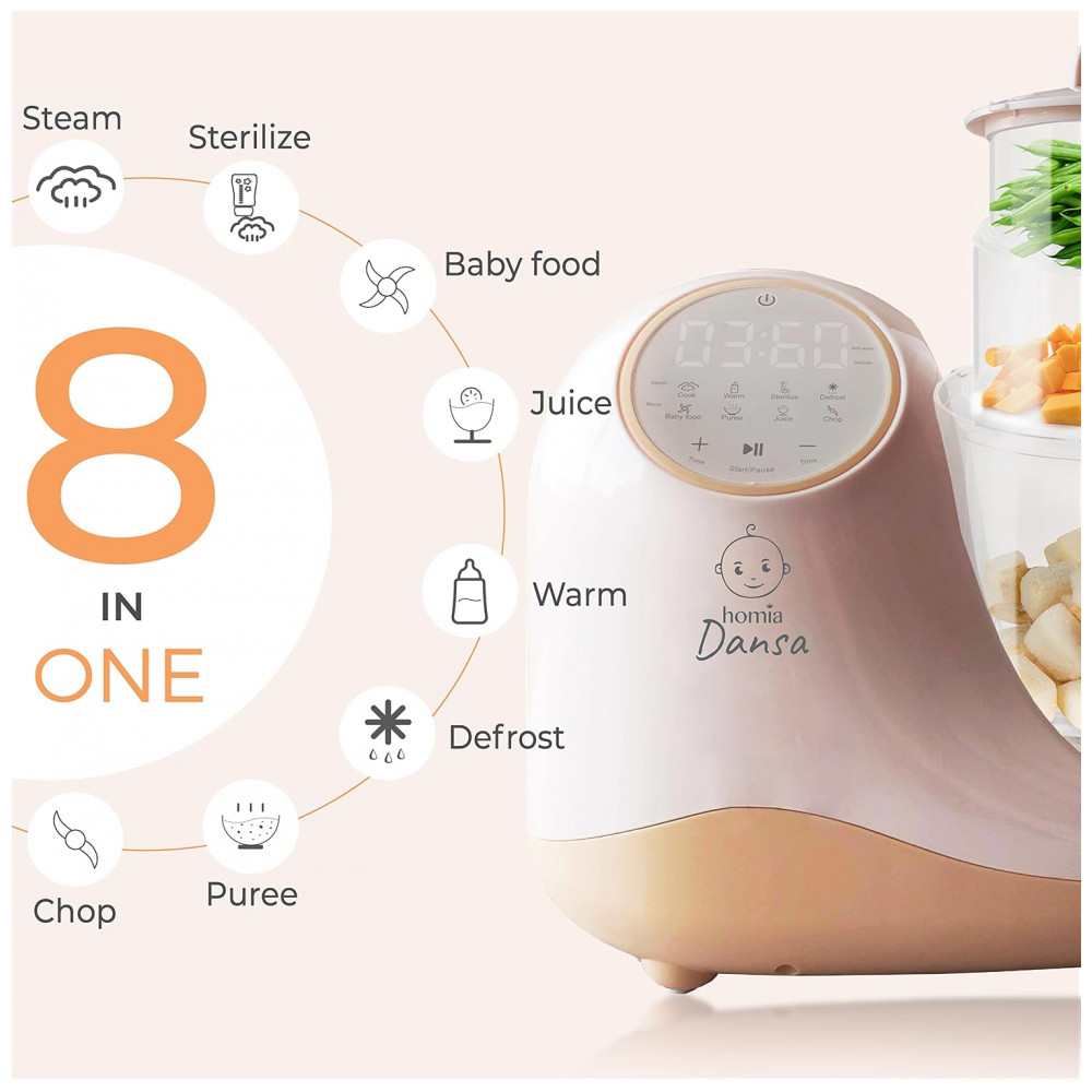 Processador de Alimentos para Bebês 8 em 1 Capacidade 600 mL, HOMIA Dansa, Laranja Claro