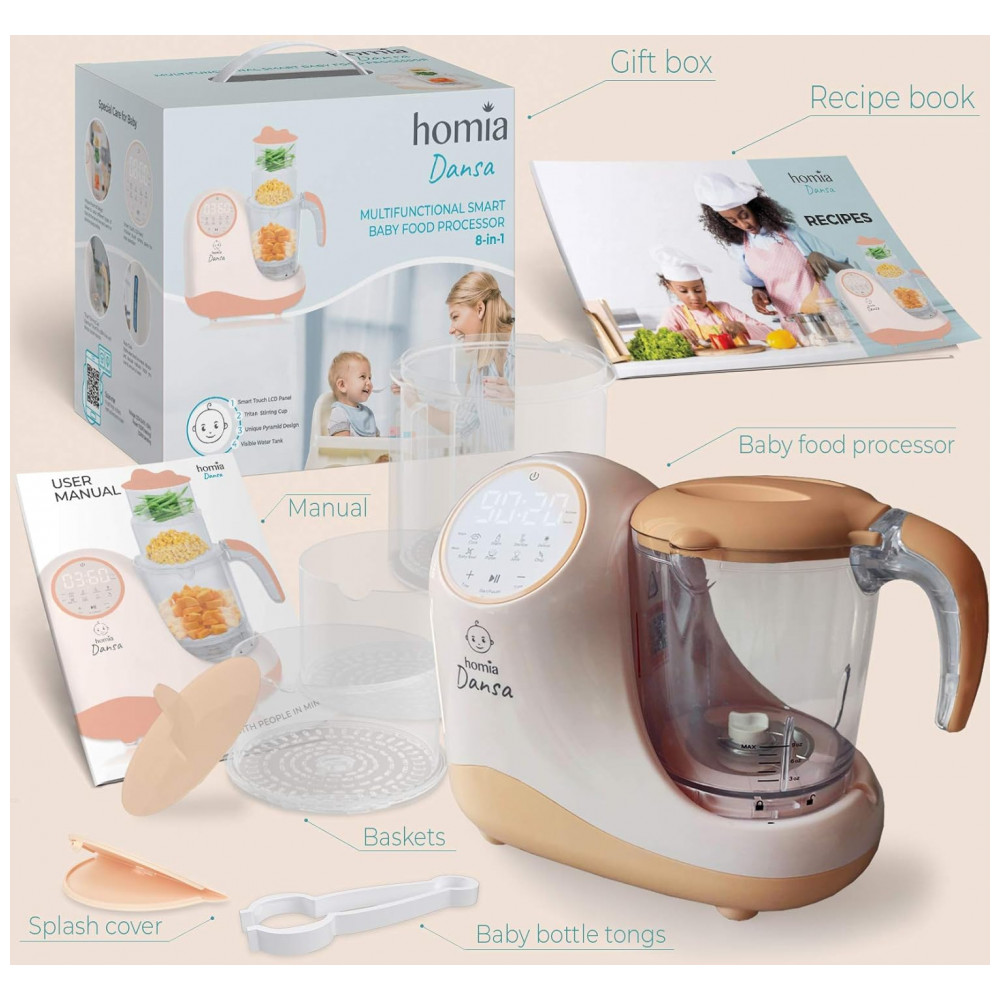 Processador de Alimentos para Bebês 8 em 1 Capacidade 600 mL, HOMIA Dansa, Laranja Claro: 8 EM 1 Cozinhe, esterilize, cozinhe, faça suco, aqueça, descongele, faça purê e pique tudo o que você precisa de um processador de alimentos para bebês.