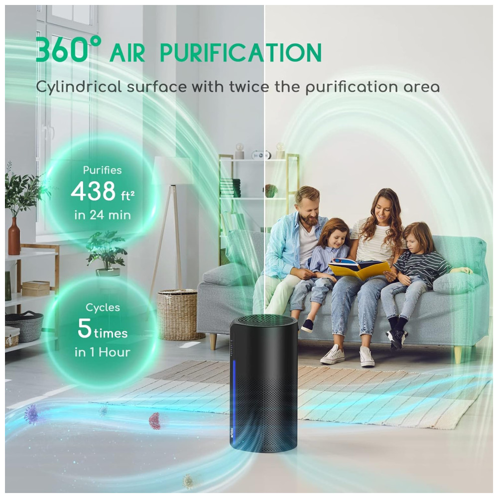 Purificador de Ar, com Filtro H13 HEPA, Luz Ajustavél, Área 40 m2, AFLOIA miropro, Preto