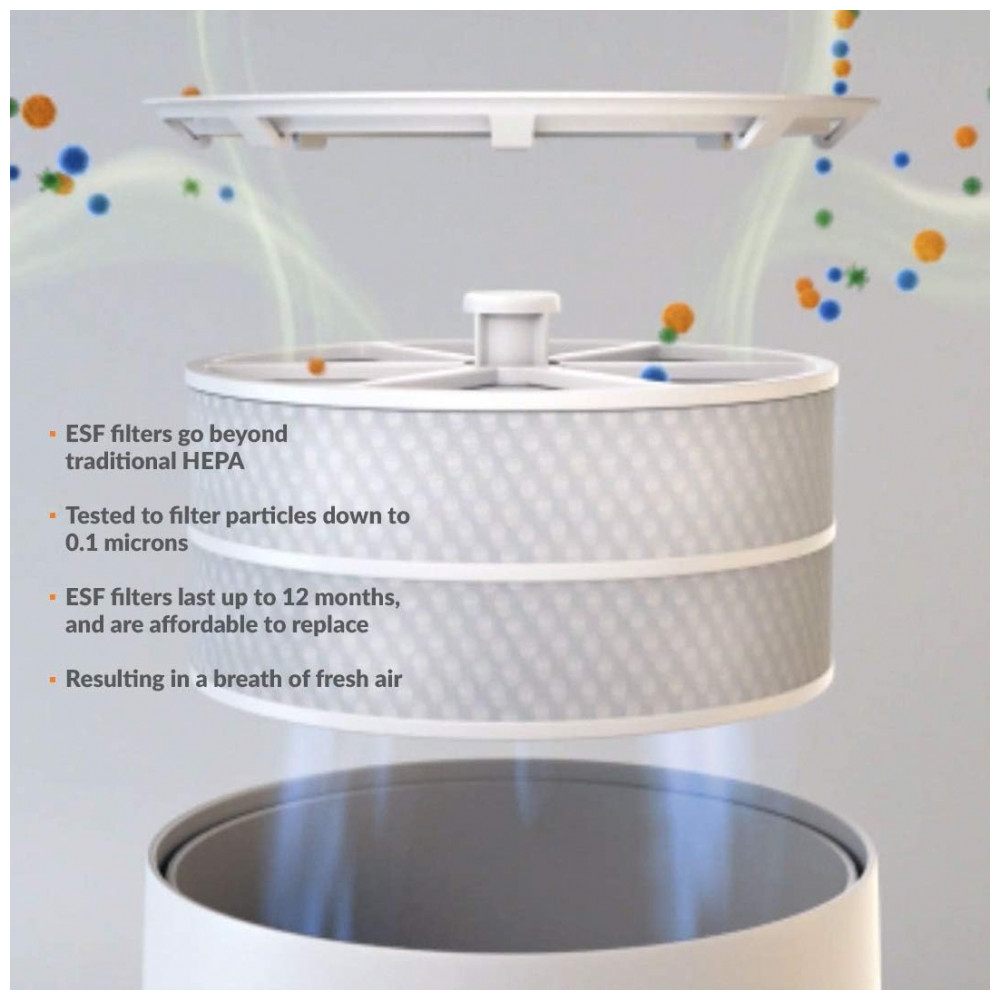 O filtro eletrostático patenteado da Avari é 100 livre de ozônio e captura 99,9 dos contaminantes transportados pelo ar tão pequenos quanto 0,1 microns.