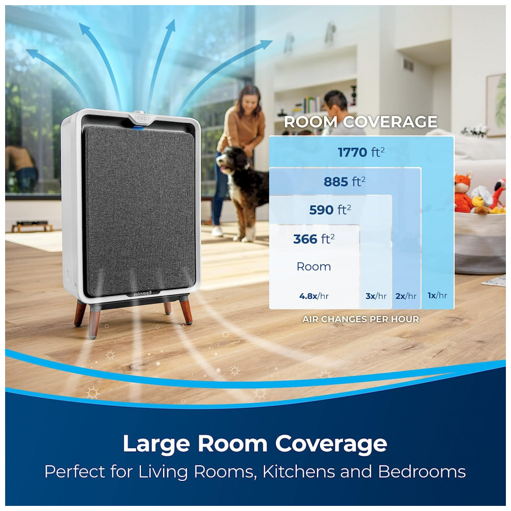 Testado de acordo com o padrão AHAM para ter um Smoke CADR de 199 para quartos de até 28 m2, tornando o ótimo para quartos, áreas de estar, porões e salas de jantar