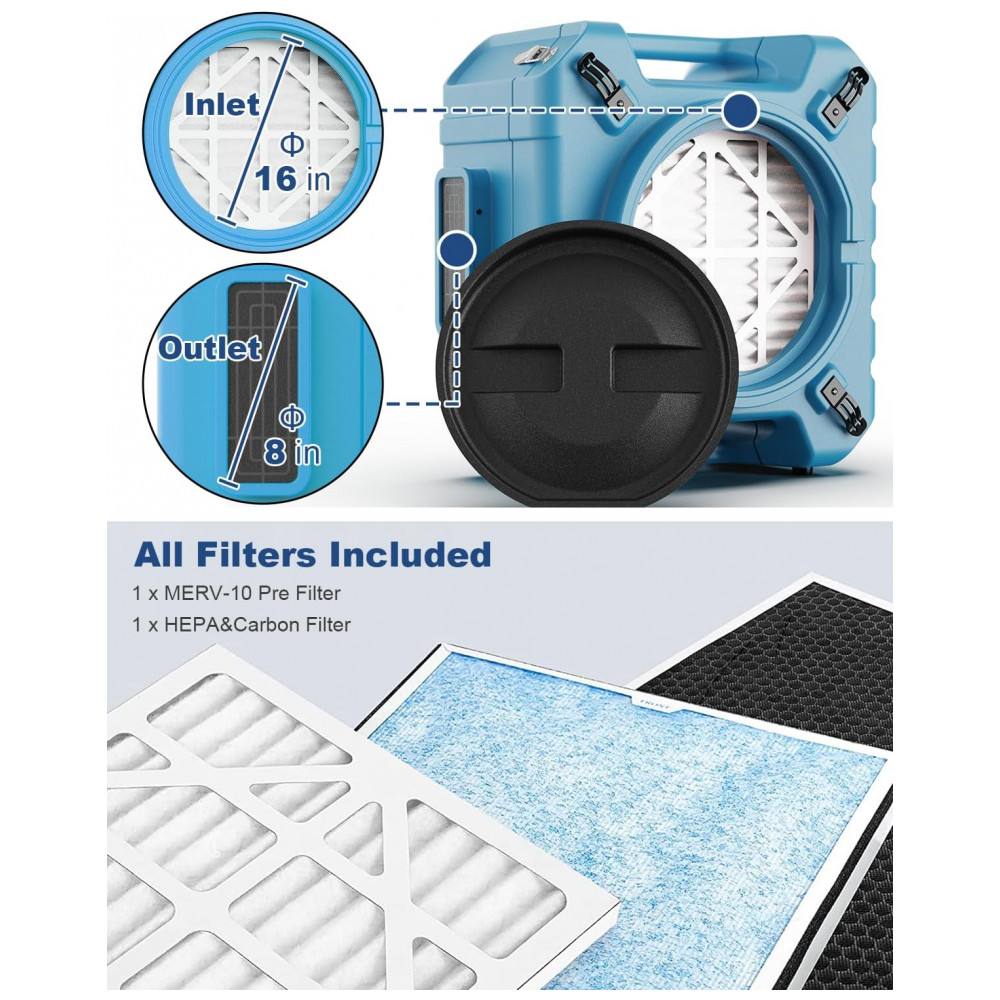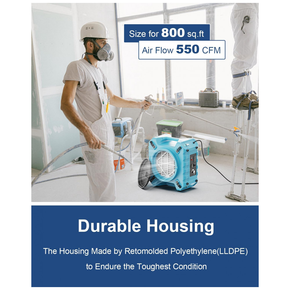 Purificador de Ar Industrial com Filtro HEPA Pro 870 com Filtragem de 3 Estágios, 115V, Alorair, Azul