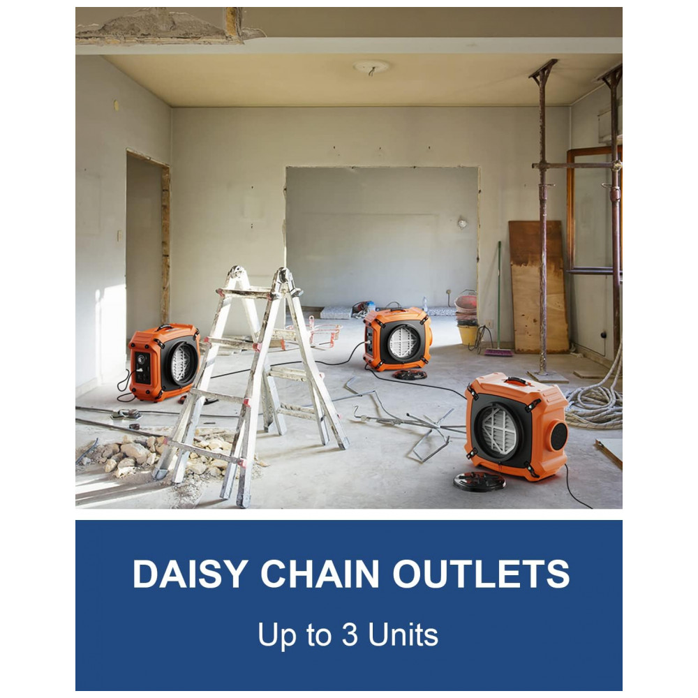 Com uma entrada de ar maior do que outras unidades concorrentes, este purificador de ar é capaz de filtrar grandes volumes de ar, tornando o ideal para locais de construção, reparos domésticos, remediação de esgoto, água e restauração de danos por incêndio, bem como para salões de beleza ou gráficas.