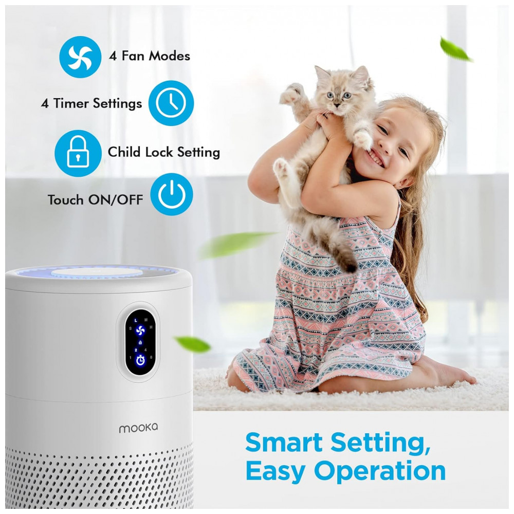 Purificador de Ar para Grandes Espaços com Filtro HEPA H13, Área 40 m2, MOOKA B D02L, Branco: PURIFICADOR DE AR MOOKA B D02L PARA SALA GRANDE Com o sistema de filtragem de alta eficiência, o purificador de ar cobre uma área de até 430 pés 40m.