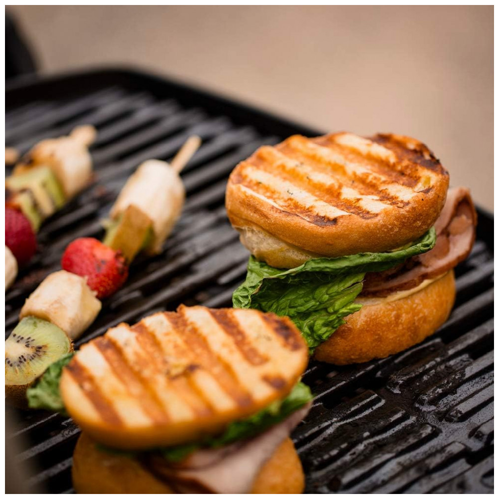 Um queimador de aço inoxidável produz 8500 BTU por hora para aquecer a área total de cozimento de 145 centímetros quadradas Grates de cozimento de ferro fundido e alumínio fundido…