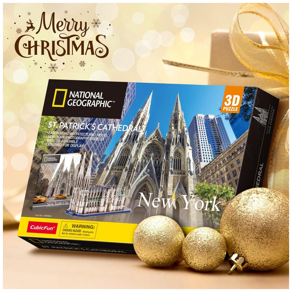 Quebra Cabeças 3D Arquitetura Catedral de São Patricío para Crianças e Adultos, 117 Peças, CUBICFUN, Branco
