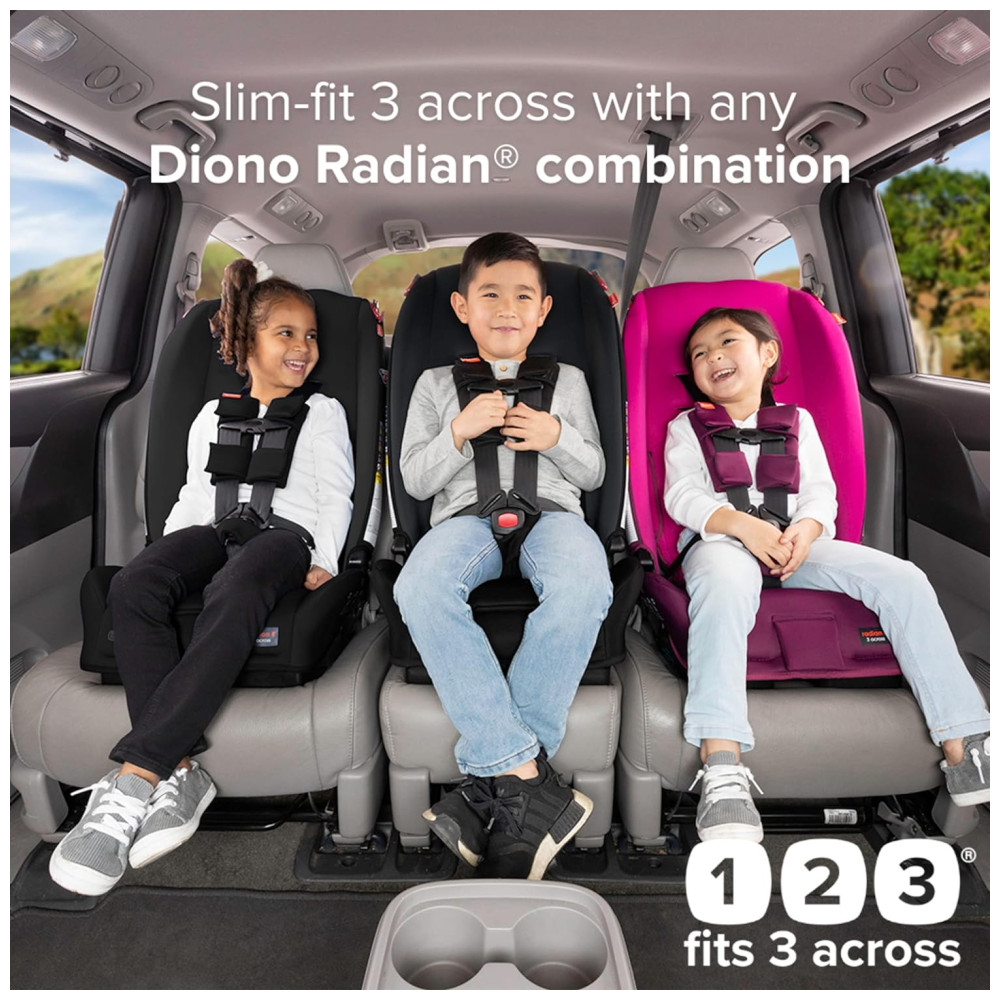 O 3 ACROSS Construído com nosso famoso design conversível radian slim fit , para caber 3 na maioria dos veículos sem comprometer o conforto das crianças ou passageiros.