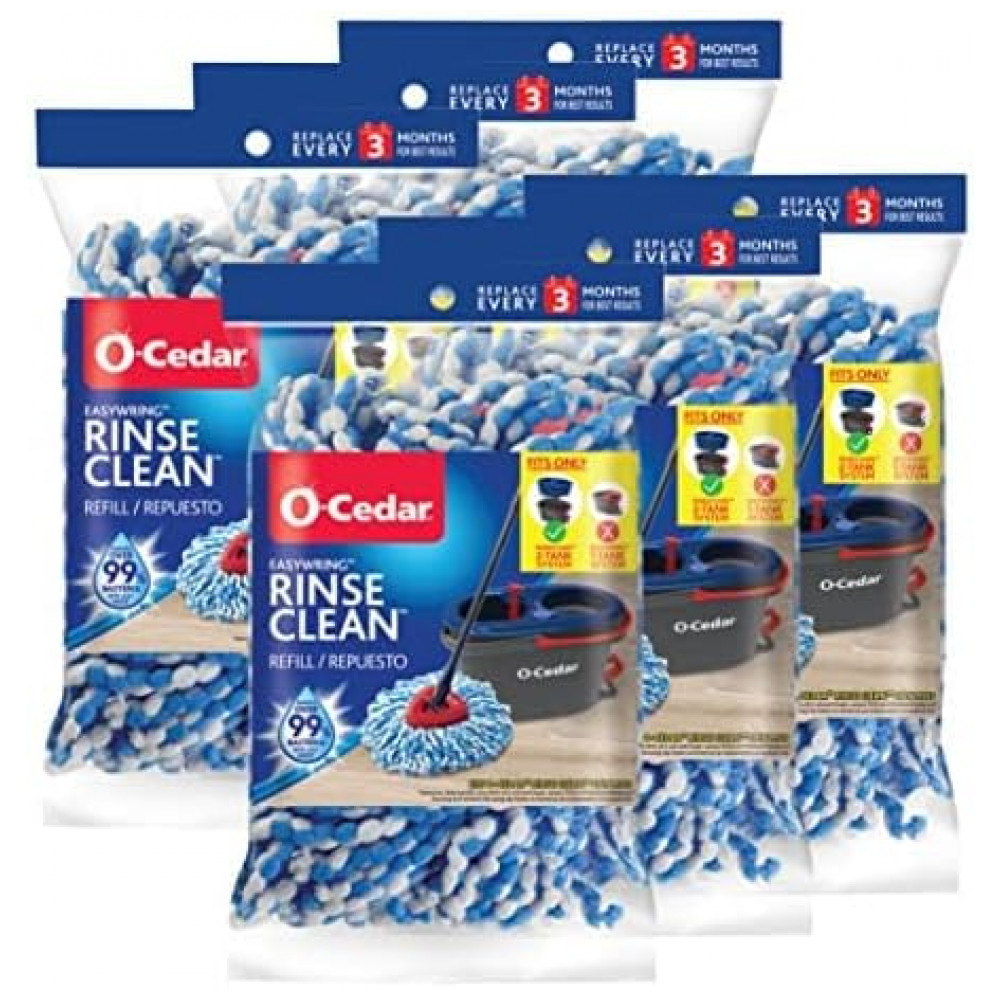 Refil Mop de Microfibra Lavável RinseClean O Cedar, 6 Unidades: ALTA QUALIDADE Obtenha o máximo do seu O Cedar EasyWring RinseClean Spin Mop Bucket System com recargas genuínas de cabeça de esfregão O Cedar que são projetadas para trabalhar juntas para fornecer o desempenho ideal de limpeza do piso.