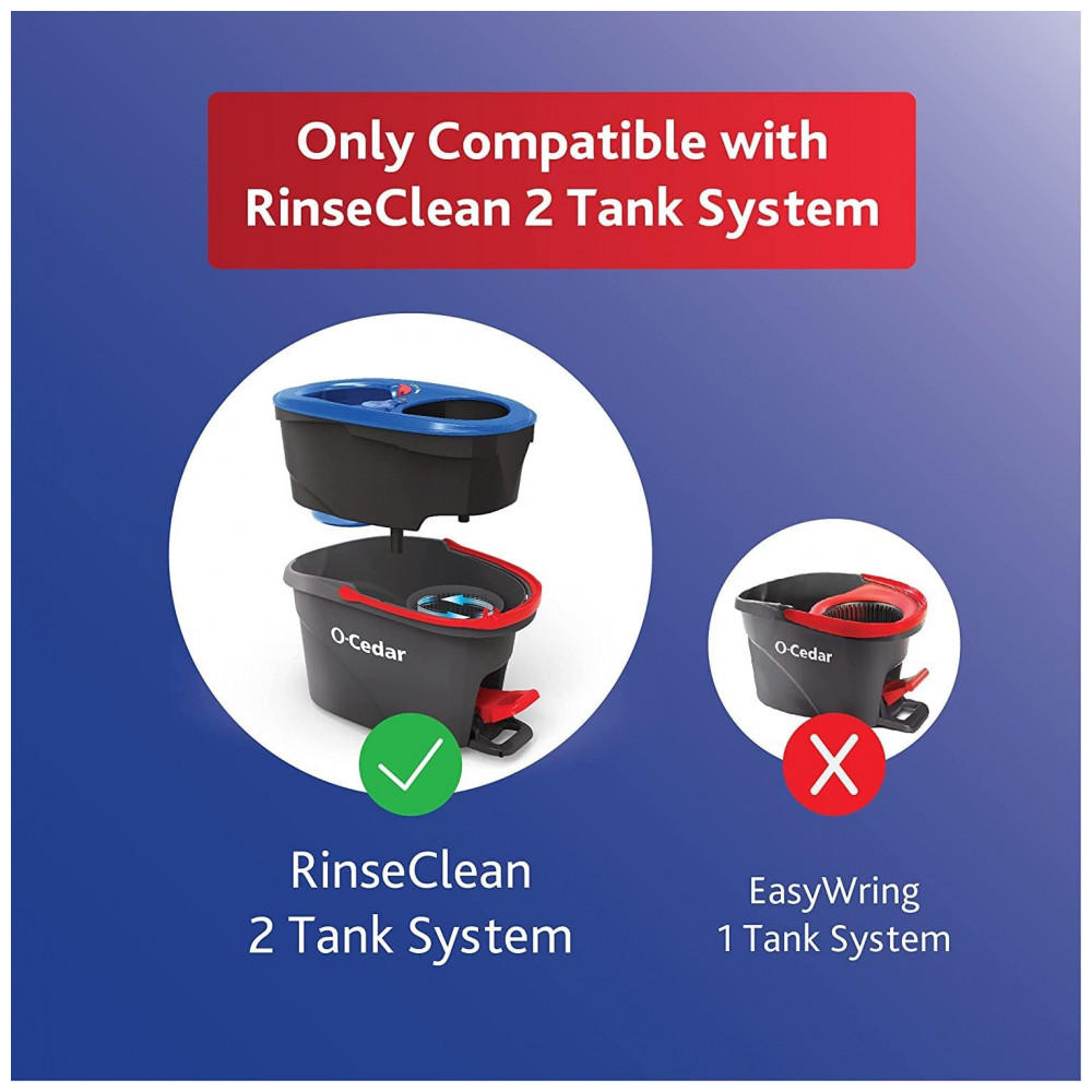 USE MOLHADO OU SECO Nossa cabeça de esfregão é um produto de limpeza versátil, pois pode ser molhado para limpeza profunda e esfregão ou seco para fins de limpeza COMPATÍVEL APENAS COM RINSECLEAN Este refil é compatível apenas com o sistema O Cedar EasyWring RinseClean Spin Mop and Bucket.