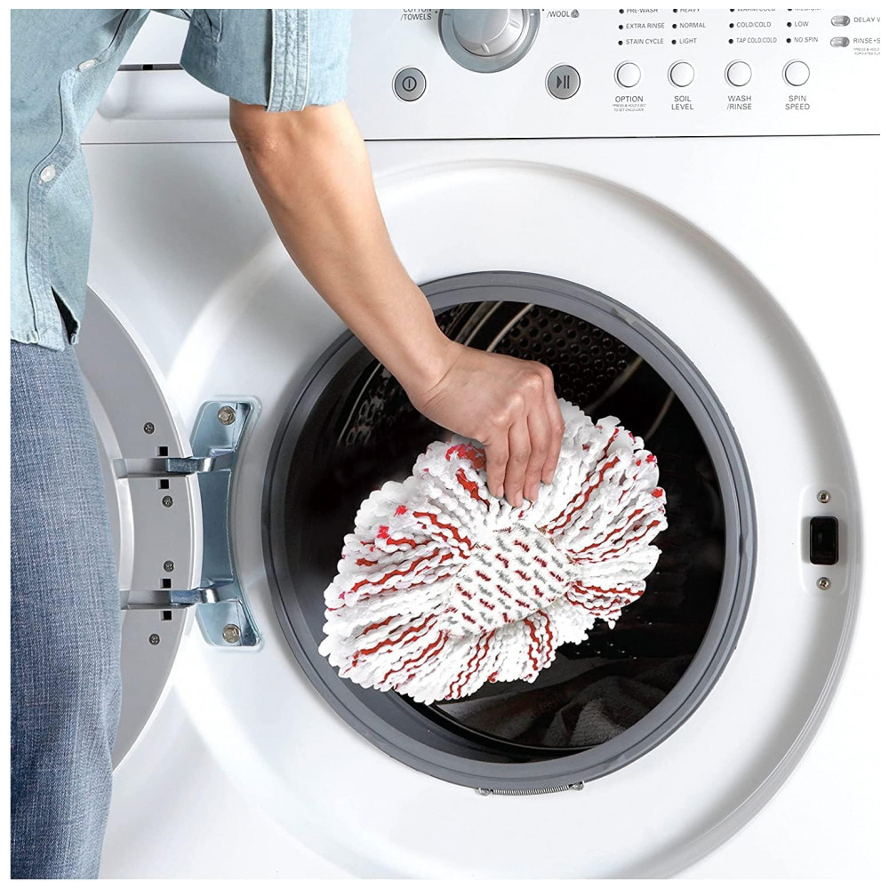 LAVÁVEL NA MÁQUINA E REUTILIZÁVEL A cabeça do esfregão de substituição pode ser lavada na máquina e reutilizada várias vezes, economizando tempo e dinheiro na limpeza.