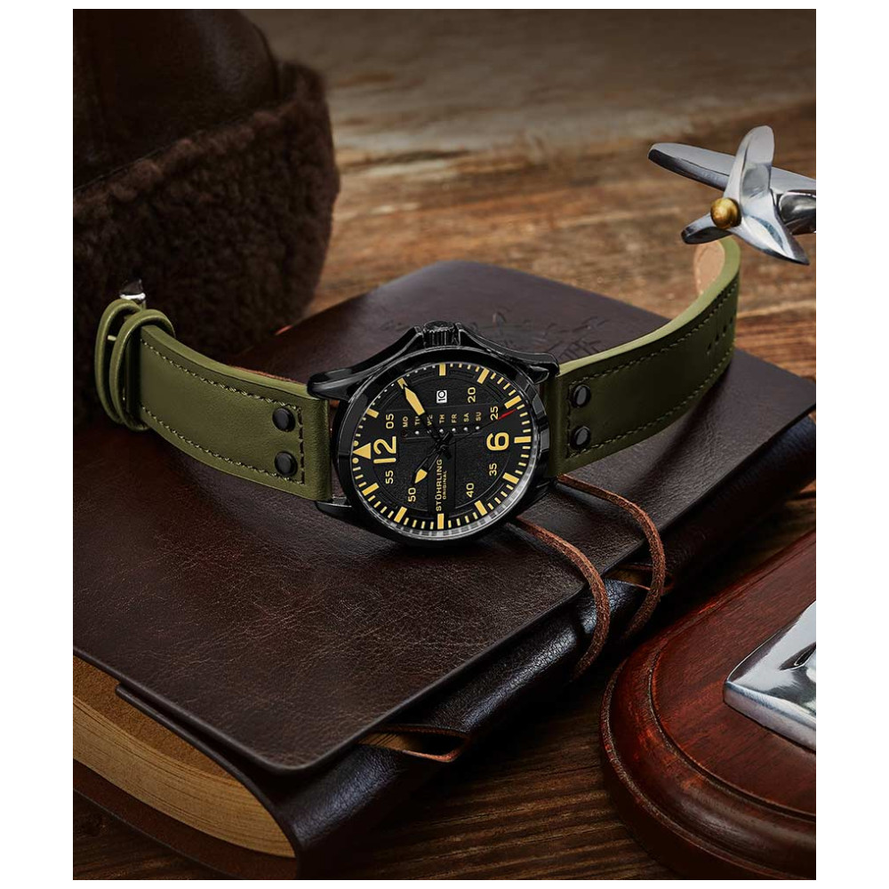 Este relgio combina o estilo clssico do aviador com a sensibilidade moderna da Stuhrling, tornando o uma escolha ousada e elegante para qualquer aeronauta.