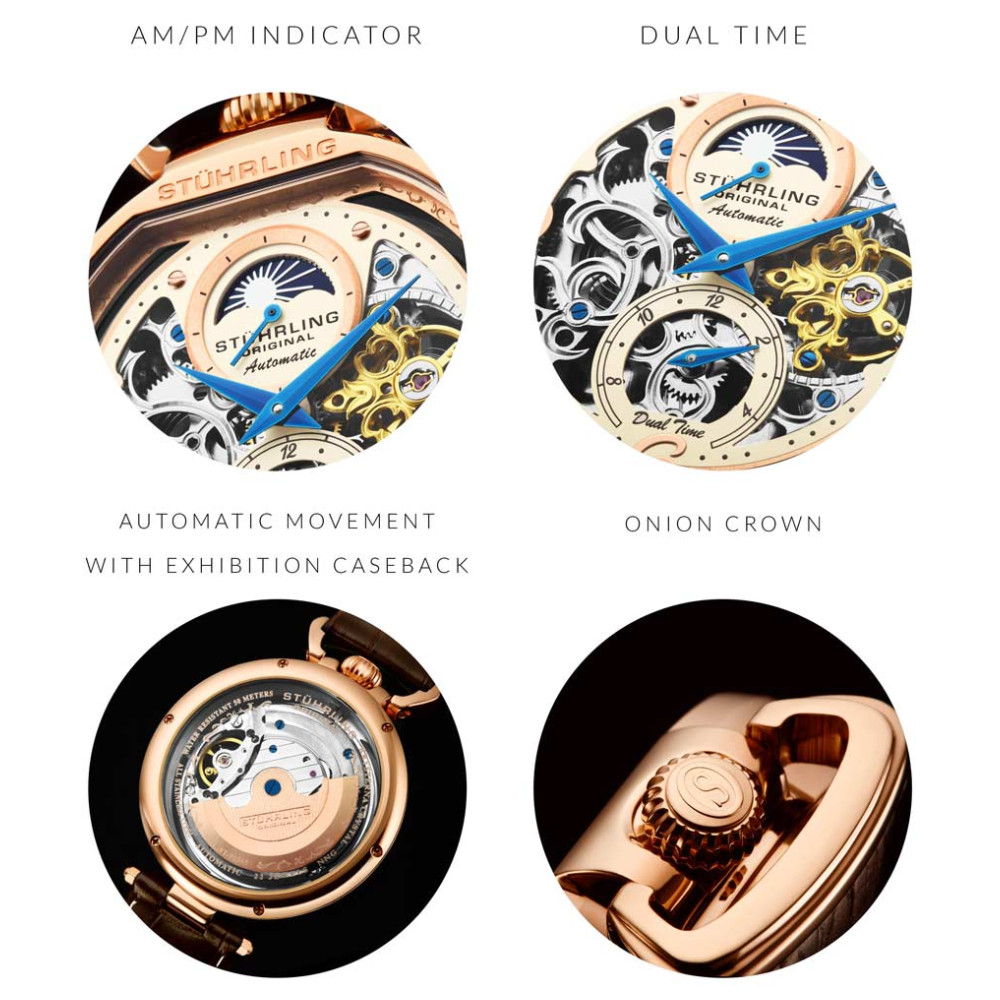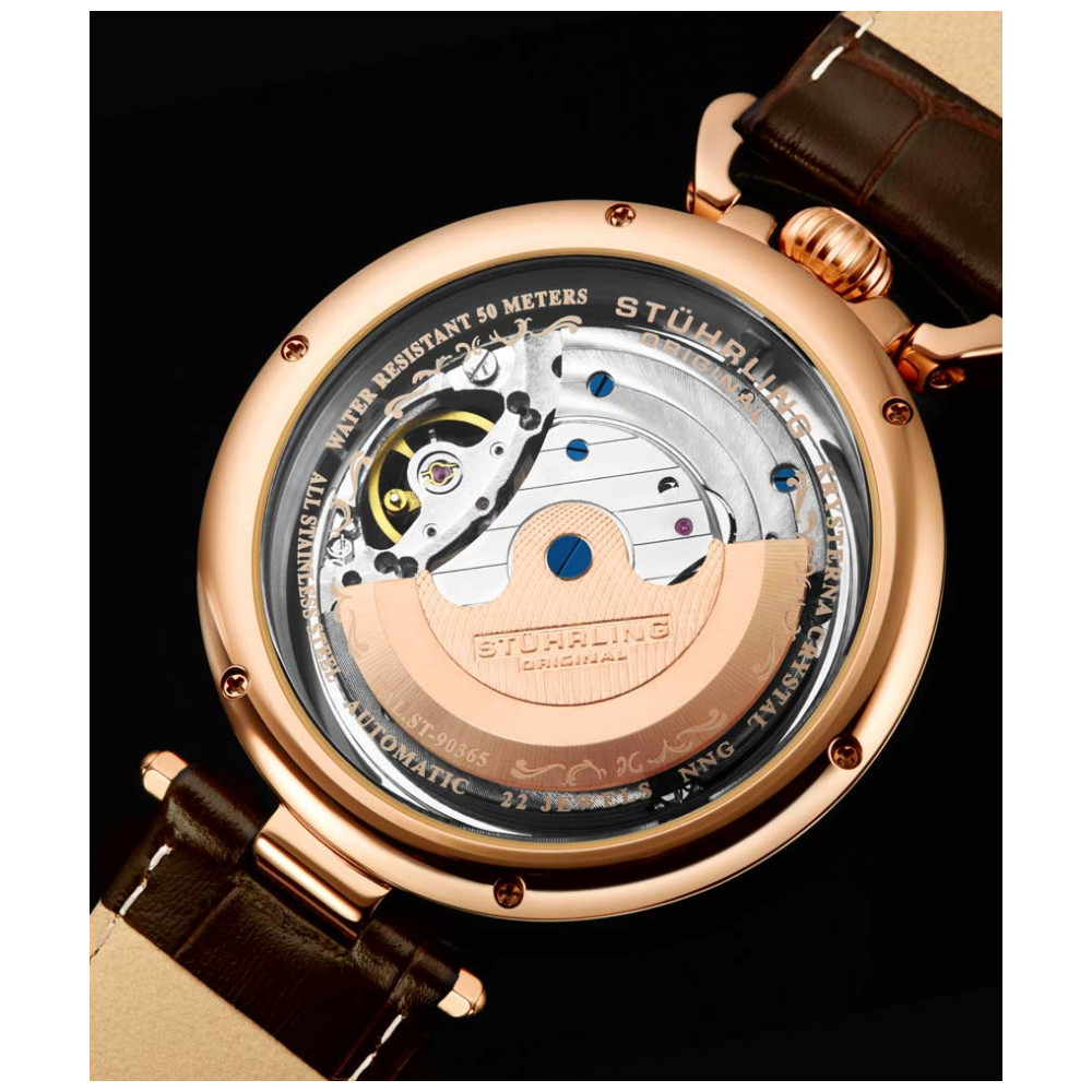 Relgio Automtico Modena 889 Mostrador Bege e Rosa Pulseira de Couro Marrom Fivela de Ouro Stuhrling: O Relgio Automtico Modena 889 uma obra prima da relojoaria, com um mostrador de tonalidade bege e rosa que ao mesmo tempo elegante e moderno.