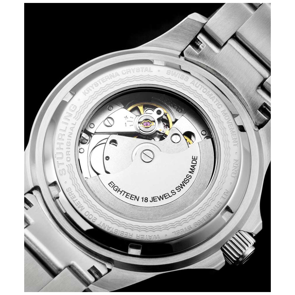Relgio Automtico Swiss Depthmaster 883 42mm, Mostrador Azul e Pulseira de Ao Inoxidvel Prateado Stuhrling: Alm disso, o mostrador azul profundo adiciona um toque de elegncia ao seu estilo de mergulho.