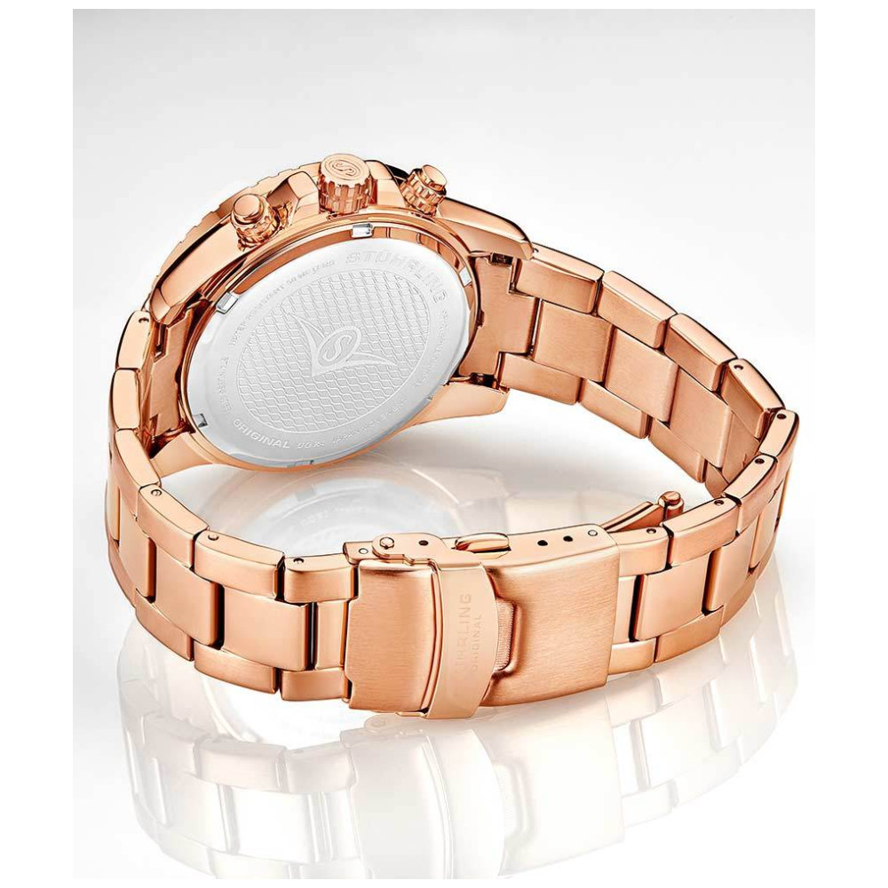 Relgio Crongrafo Concorso 3957 de 40mm com Mostrador Preto e Pulseira de Ao Inoxidvel Rosa Stuhrling