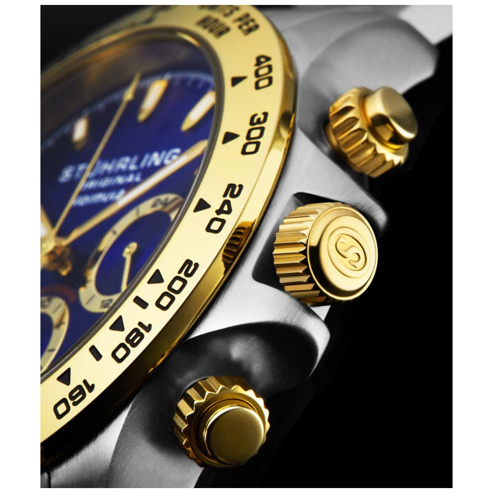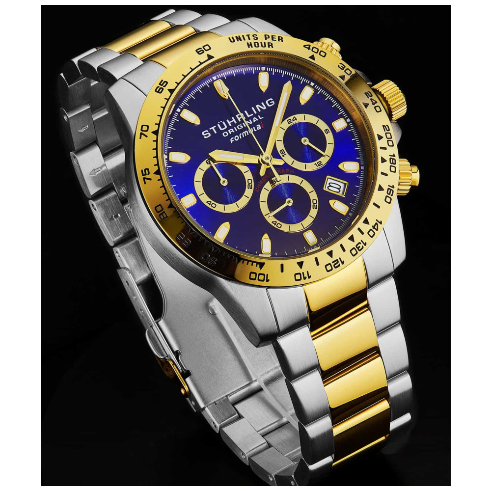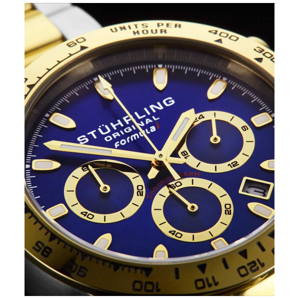 Relgio Crongrafo Formulai 891 de 42mm, Mostrador Azul e Pulseira de Ao Inoxidvel Prateado com Fivela de Implantao 2 Stuhrling.