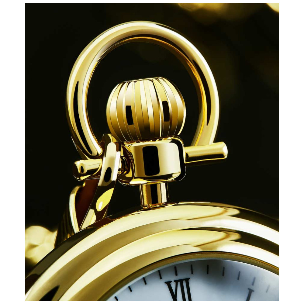 Relgio de bolso Stuhrling Vintage 6053 Handwind 47mm, mostrador branco e ouro em ao inoxidvel dourado