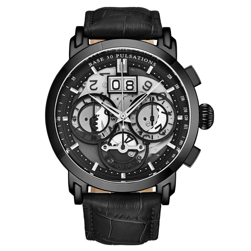 Relgio de pulso Crongrafo Imperia 4030 com mostrador preto de , pulseira de couro preto e fivela Tang preta Stuhrling: O Relgio de pulso Crongrafo Imperia 4030 um produto de alta qualidade da marca Stuhrling.