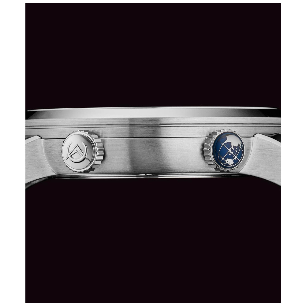 Alimentado por um movimento suo Ronda 515, o relgio apresenta um movimento s 24h GMT, tornando o um companheiro ideal para viajantes globais.