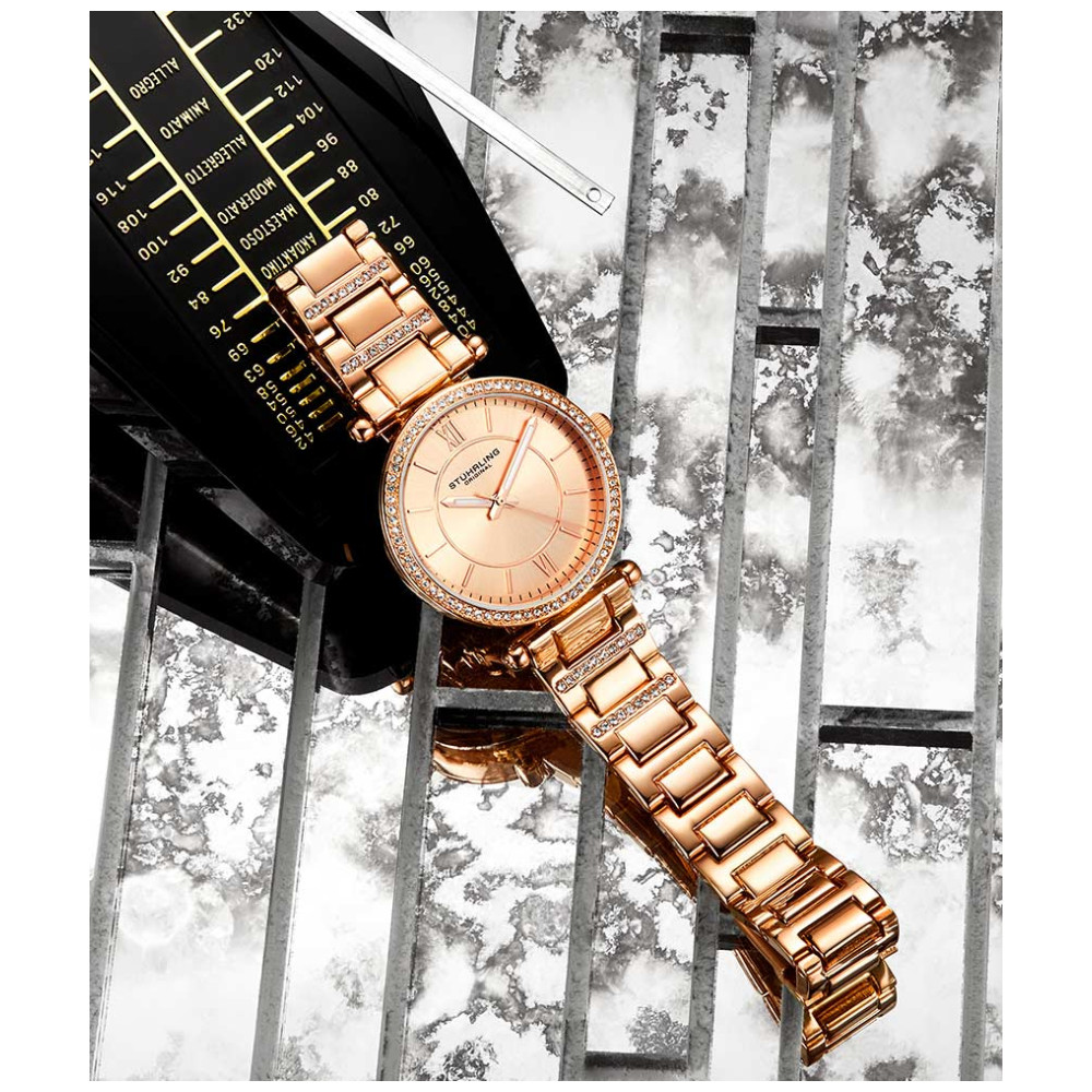 Relgio Feminino Aria 3905 36mm, Mostrador Rosa, Pulseira de Ao Inox Rosa, Fivela de Implantao Stuhrling: Alm disso, a fivela de implantao garante um ajuste seguro e confortvel em seu pulso.