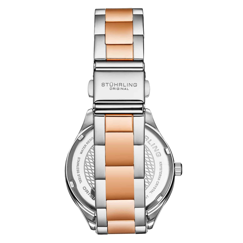 Relgio feminino Saylor com madreprola e pulseira rosa de dois tons da Stuhrling: Com uma combinao de rosa e prata, proporcionando um toque delicado e sofisticado ao relgio.