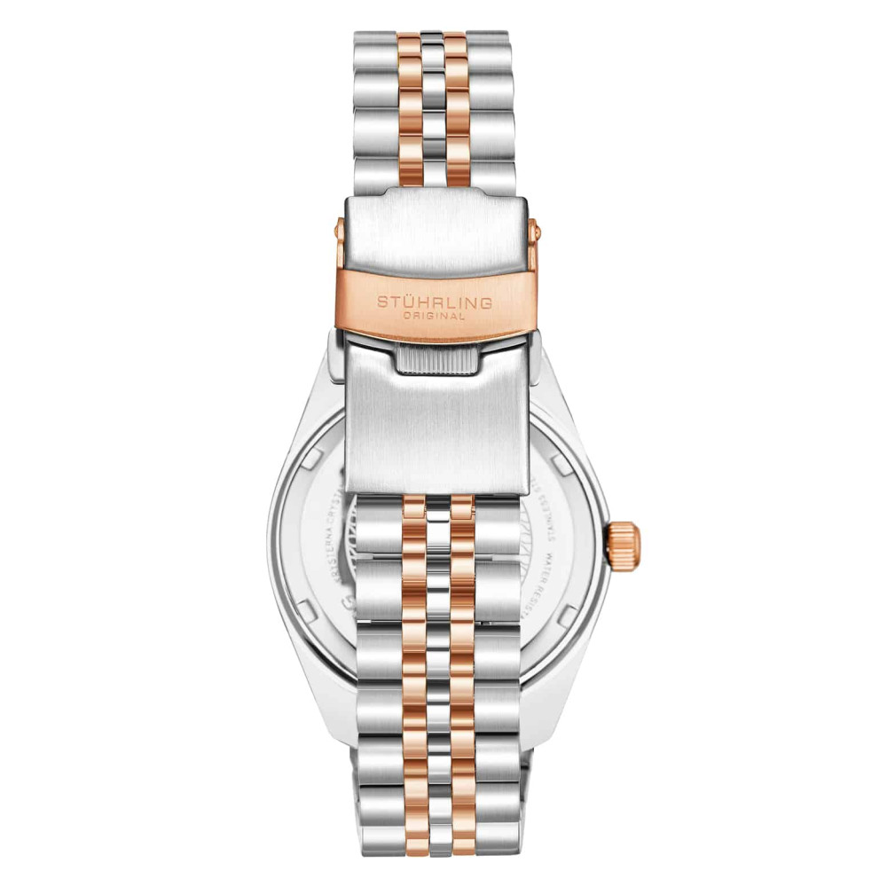 Relgio Gamine Classic 42mm 4024 com mostrador azul e pulseira prateada rosa de dois tons Stuhrling