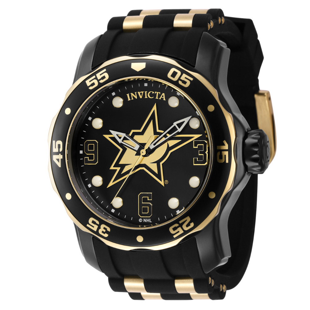 Relgio Invicta Masculino NHL Dallas Stars 48mm, Ouro e Preto ZG 42325: Este relgio Invicta da coleo NHL perfeito para quem busca preciso e estilo.