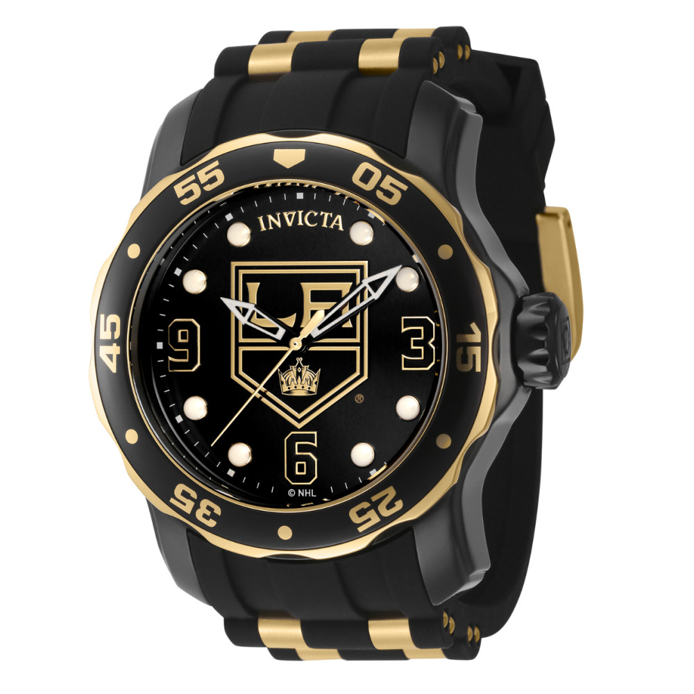Relgio Invicta NHL Los Angeles Kings 48mm. Ouro e preto. Modelo ZG 42309 para homens.