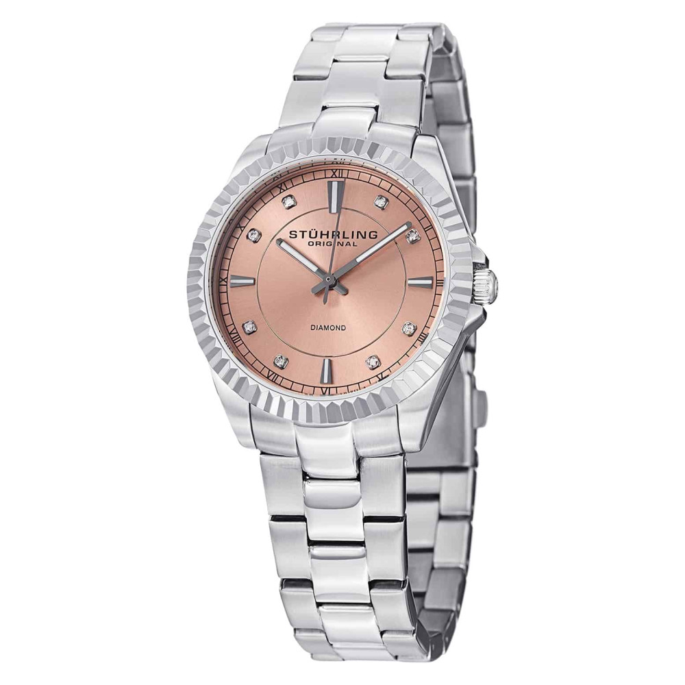Relgio Lady Marine Diamond 408LD , mostrador pssego, pulseira de ao inoxidvel prateado e fivela de Stuhrling