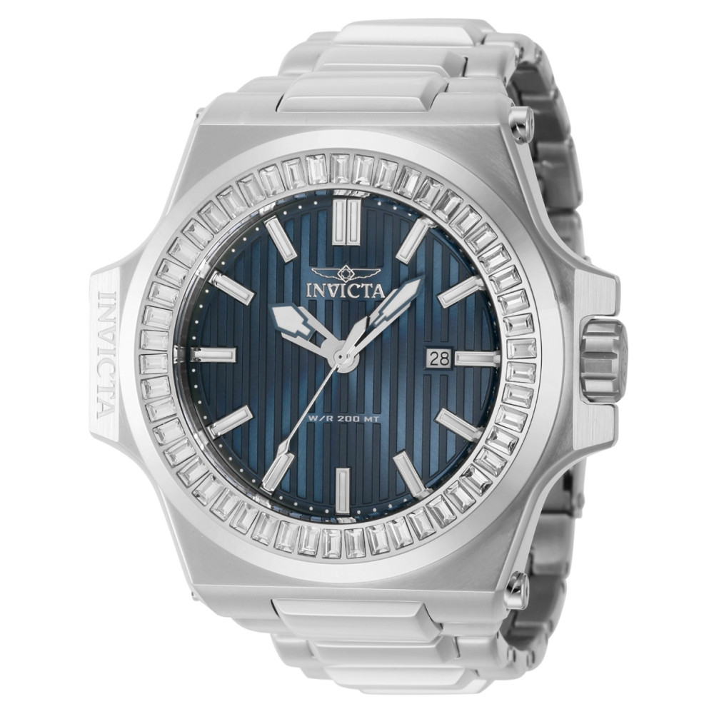 Este lindo relgio Invicta Akula contm um movimento preciso alm de uma caixa de ao branca. Seu mostrador exibe um mostrador de metal azul protegido por um Cristal Mineral de alta re…