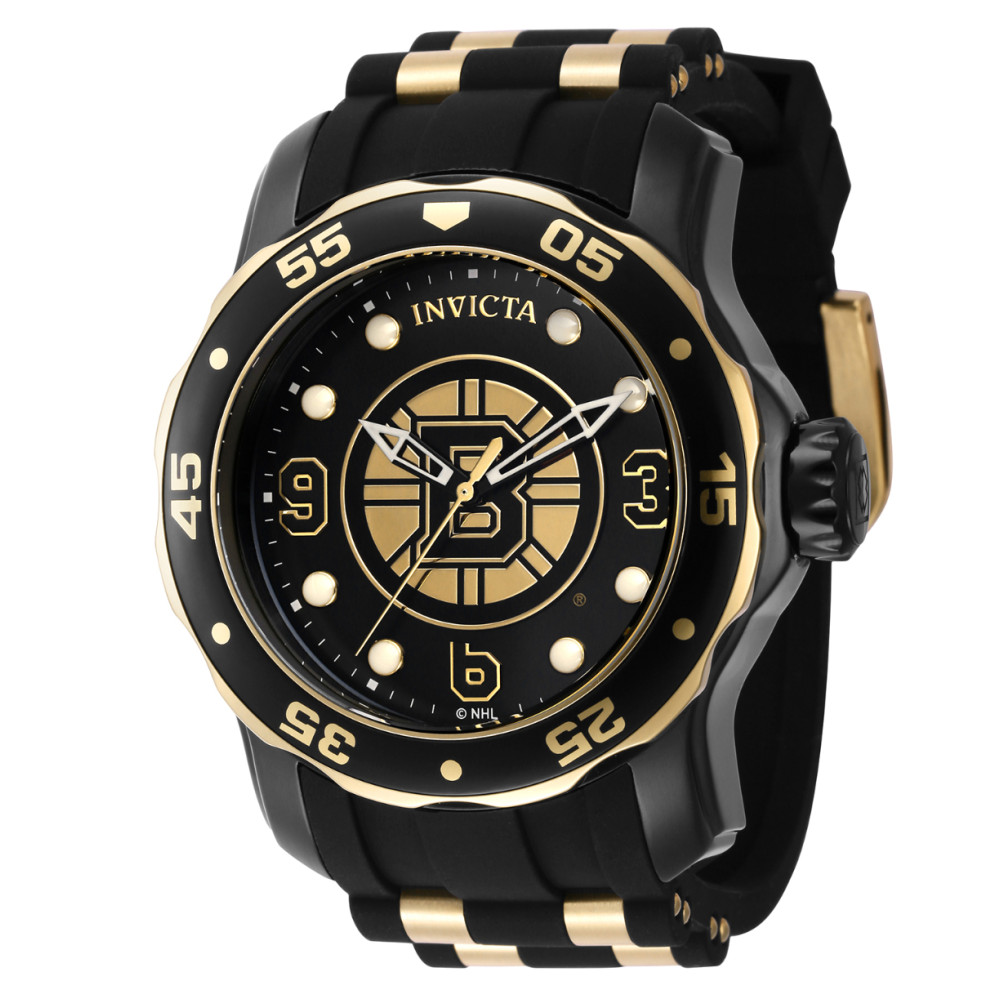 Relgio masculino Invicta NHL Boston Bruins de 48mm em ouro e preto modelo ZG 42320: Este relgio Invicta NHL um item impressionante que possui um movimento preciso e uma caixa preta.