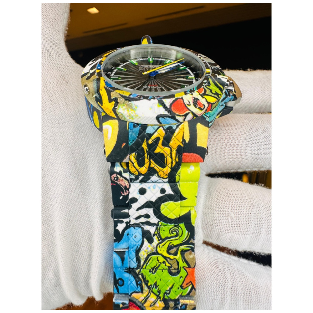 A magnitude deste poderoso relgio soberbamente executada com ao inoxidvel de grau cirrgico, movimentos suos e mltiplas opes de cores de revestimento inico.