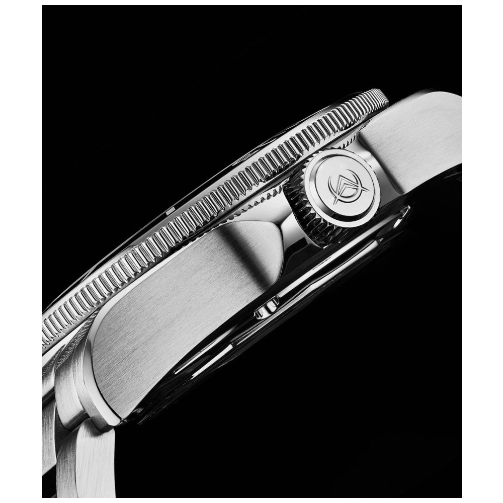 Alimentado por um movimento automtico Swiss Made Sellita SW200, o relgio extremamente preciso e confivel.