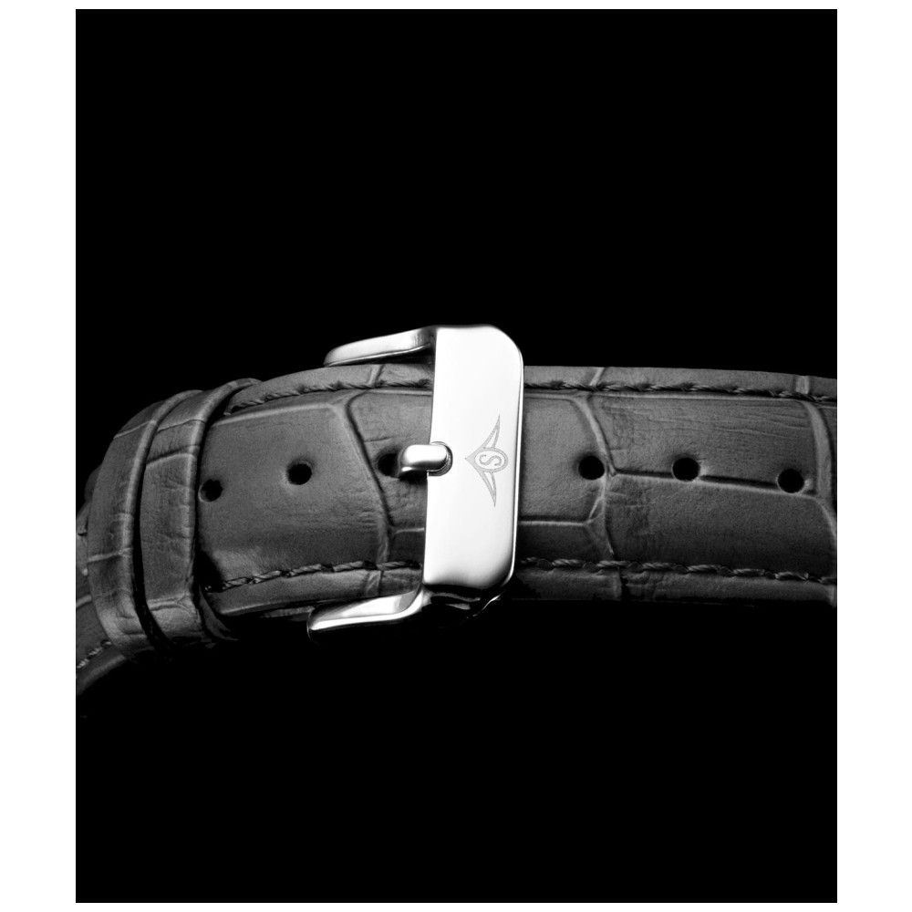 Relgio Stuhrling Classic Rasa 3997A 40mm, Mostrador Cinza, Pulseira Couro Cinza e Caixa Prata
