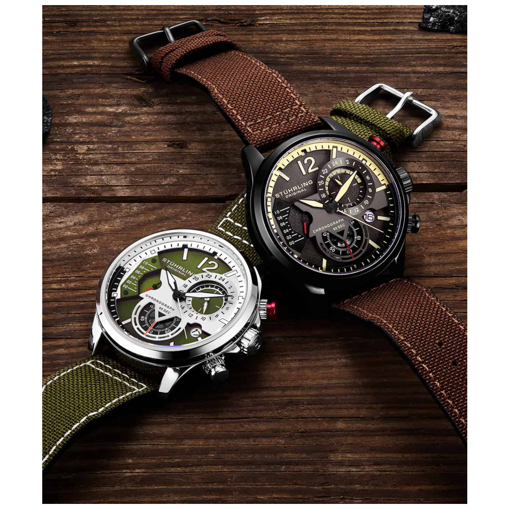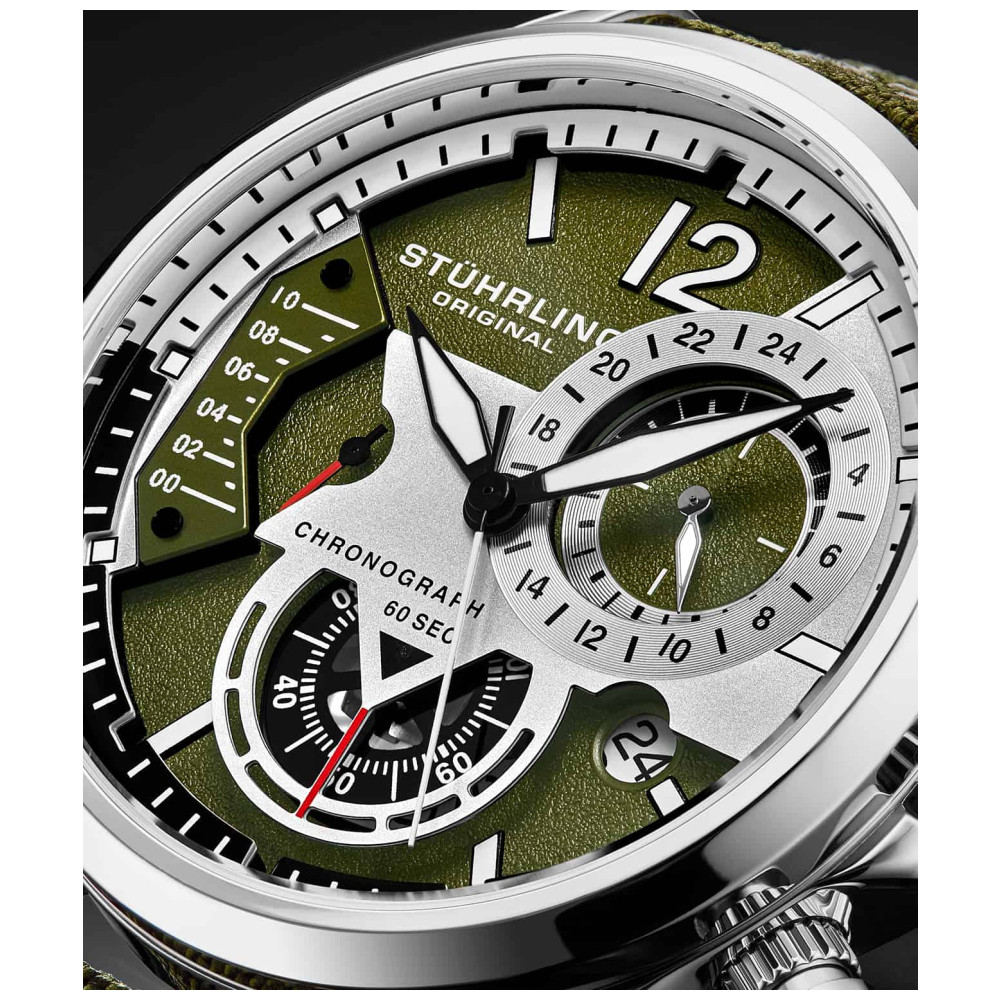 Com um design inspirado nos instrumentos de aviao, o Relgio Stuhrling Cordura 908 Aviador 45mm Verde Prata uma escolha elegante e funcional para qualquer amante de relgios.