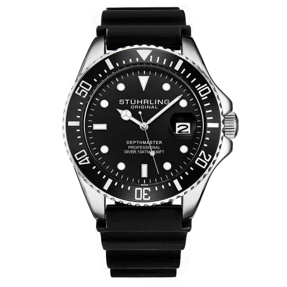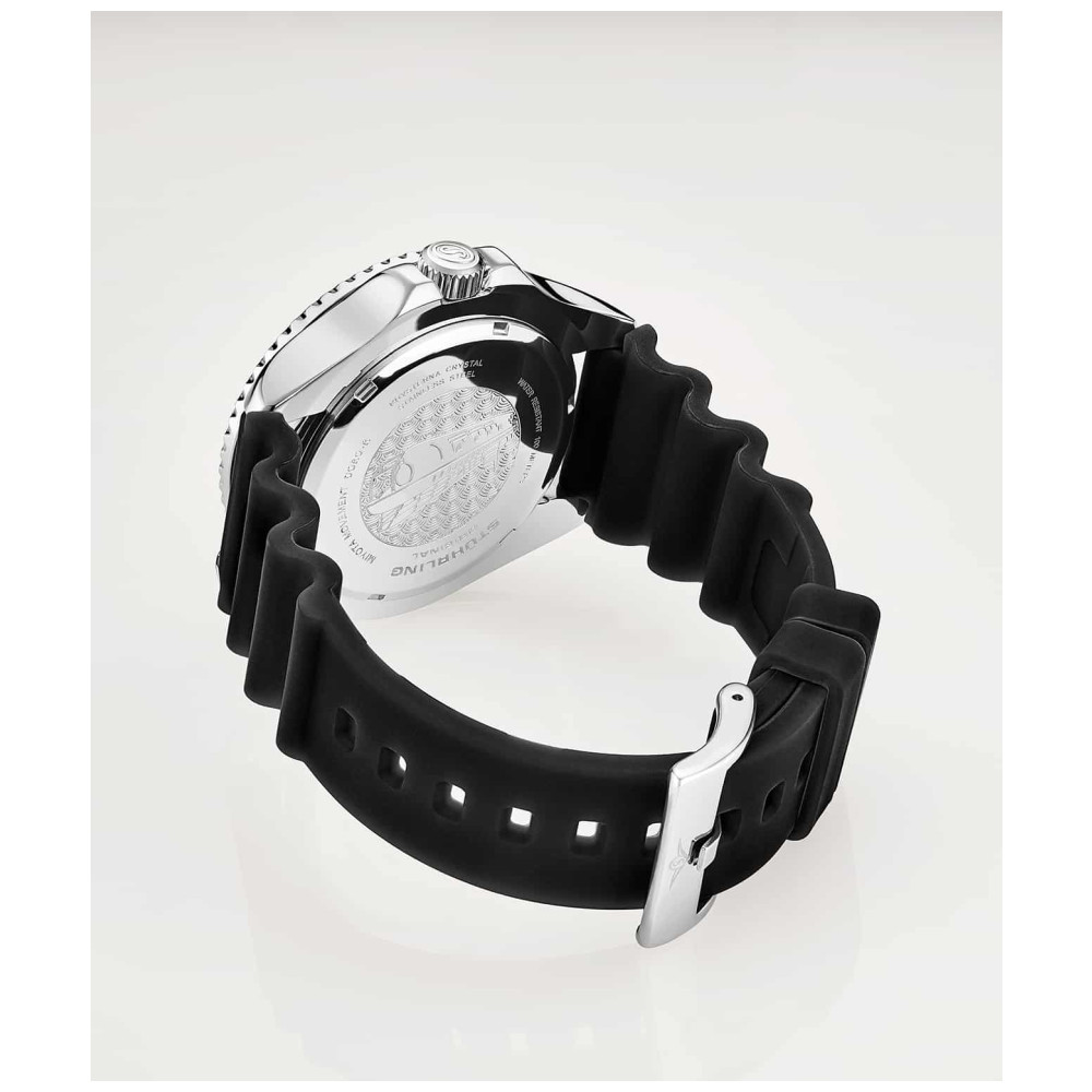 Relgio Stuhrling Depthmaster 3950R 42 mm, Mostrador Preto e Pulseira de Borracha Preta com Fivela de Prata