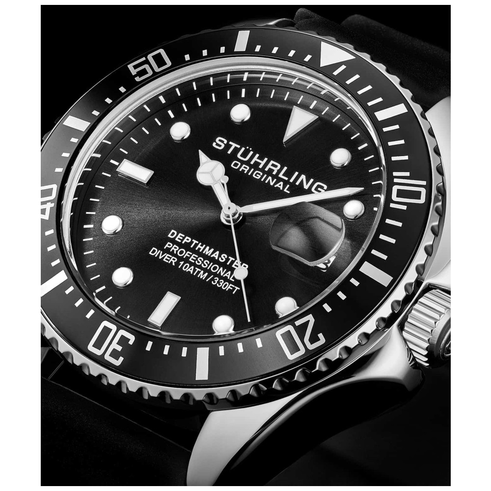 Relgio Stuhrling Depthmaster 3950R 42 mm, Mostrador Preto e Pulseira de Borracha Preta com Fivela de Prata: O Relgio Stuhrling Depthmaster 3950R um produto de alta qualidade e sofisticao, projetado para atender aos mais exigentes requisitos de desempenho.