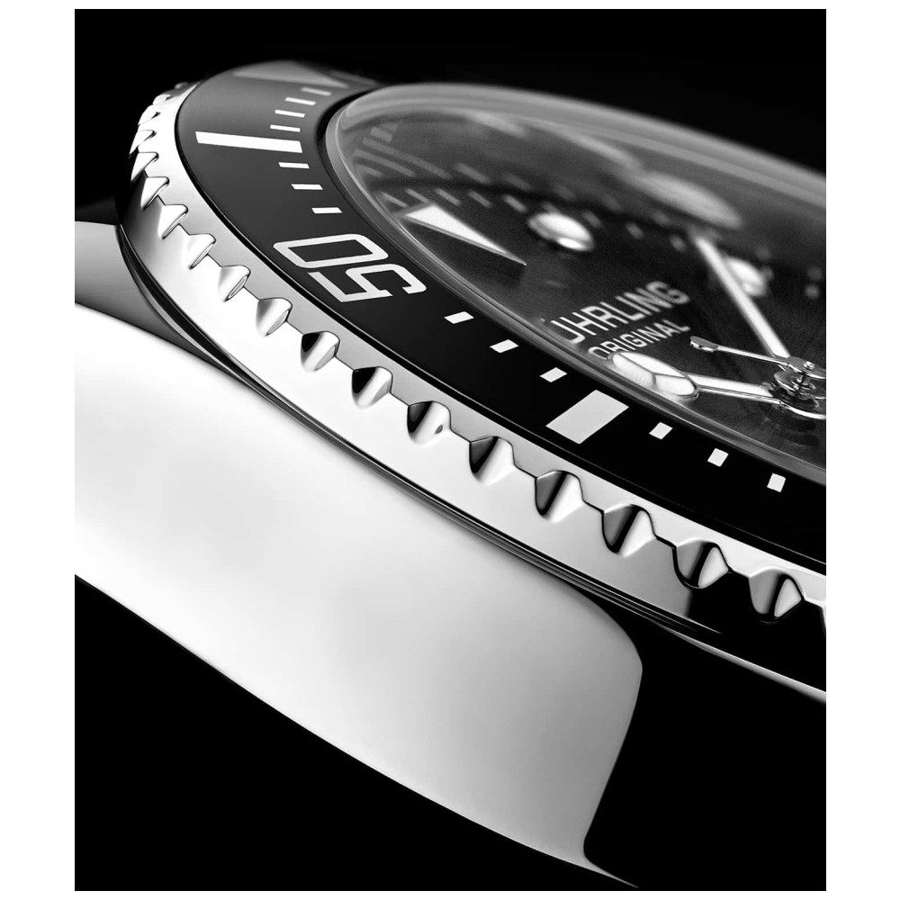 A moldura rotativa unidirecional com borda de moeda e marcadores de minuto um dos destaques deste modelo, garantindo preciso e segurana em suas atividades.