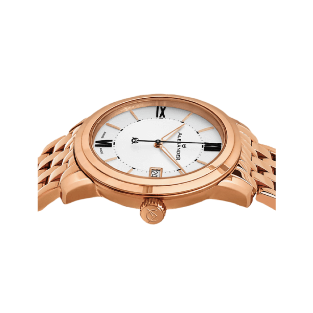 Seu acabamento em ouro rosa adiciona um toque de luxo e sofisticao ao design clssico e atemporal.