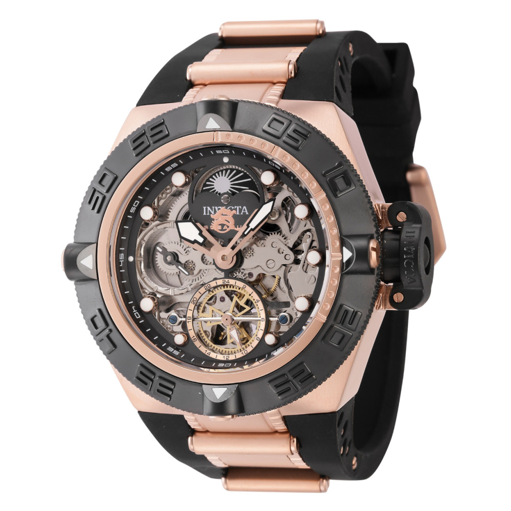Este relgio Invicta Subaqua um modelo impressionante com movimento Automtico preciso e caixa em ouro rosa preto. Seu mostrador de metal esqueltico protegido por um cristal mineral…