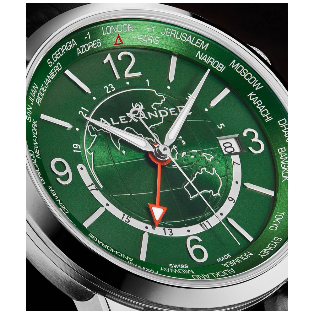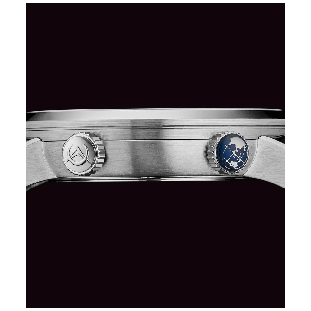 Alimentado pelo movimento suo Ronda 515, o relgio possui um movimento 24 GMT, tornando o um companheiro ideal para viajantes globais.